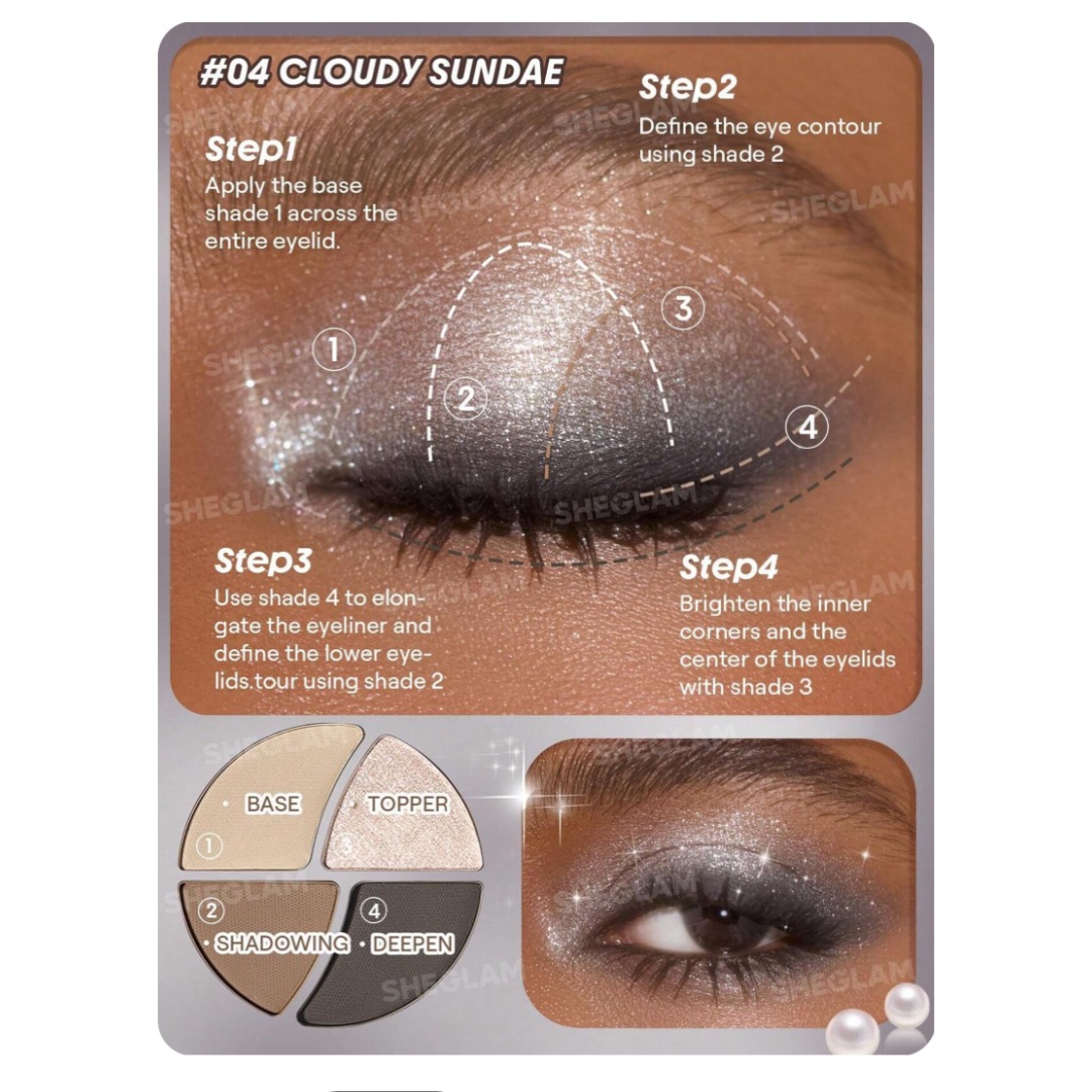 مینی پالت Cloudy Sundae از سری Daydreamer برند شیگلم، مجموعهای از چهار رنگ هماهنگ و بسیار کاربردی است که بهطور خاص برای ایجاد آرایش چشمهای لطیف و در عین حال قابل ترکیب طراحی شده است. این پالت شامل سه رنگ مات یا نیمهمات با بافتی نرم و مخملی است که بهراحتی روی پلک پخش میشوند و همزمان یک رنگ شاین (میکروفاین گلیتر) دارد که هنگام بازتاب نور برجستگی لطیف و درخشانی به آرایش میبخشد — مناسب برای لحظاتی که میخواهی آرایش چشمت کمی جلوه و بعد داشته باشد.